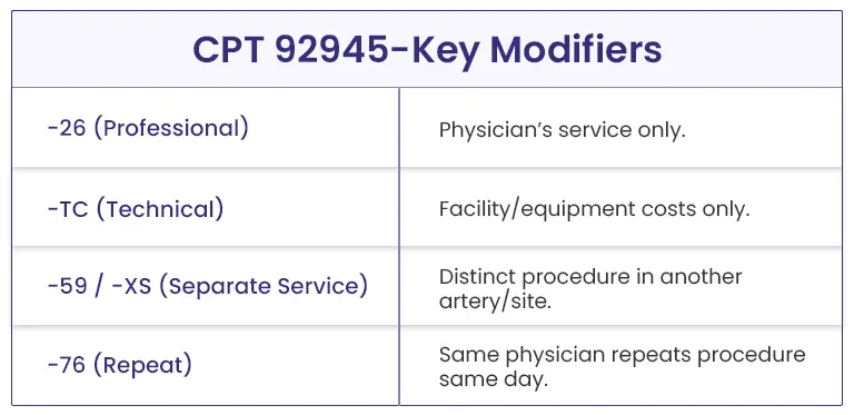 Modifier Application for Cardiology Billing CPT Code 92945